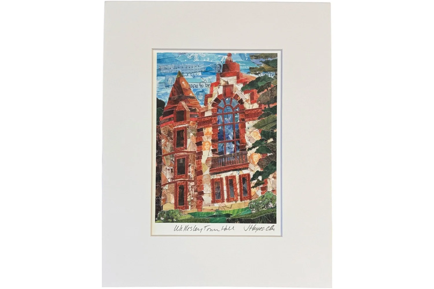 Janice Hayes-Cha combines her collection of greeting cards with painting to create mixed media collages of Boston area landmarks.